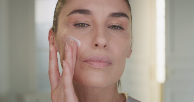 beauty-shot-of-mature-woman-applying-moisturizing-anti-wrinkle-day-or-night-cream-on-h-SBI-349950133